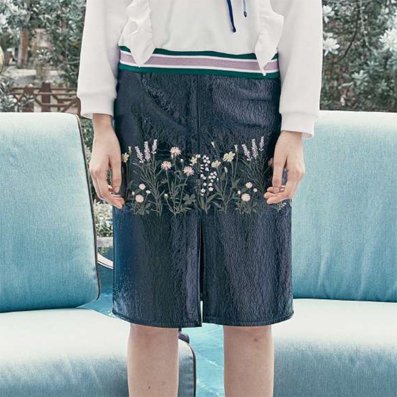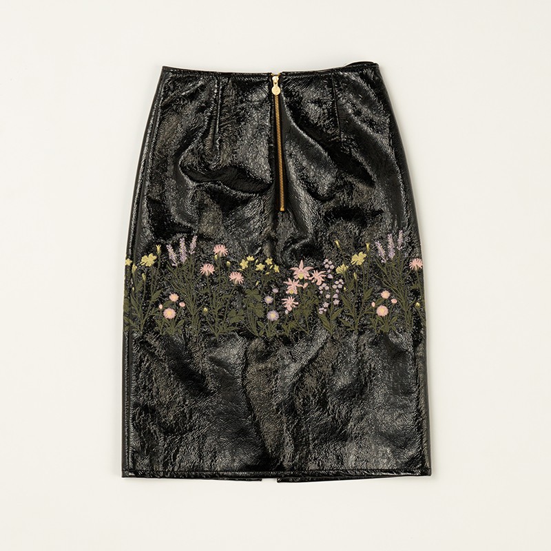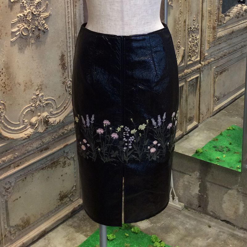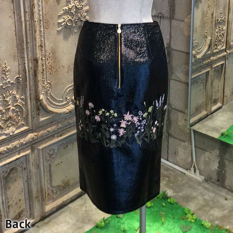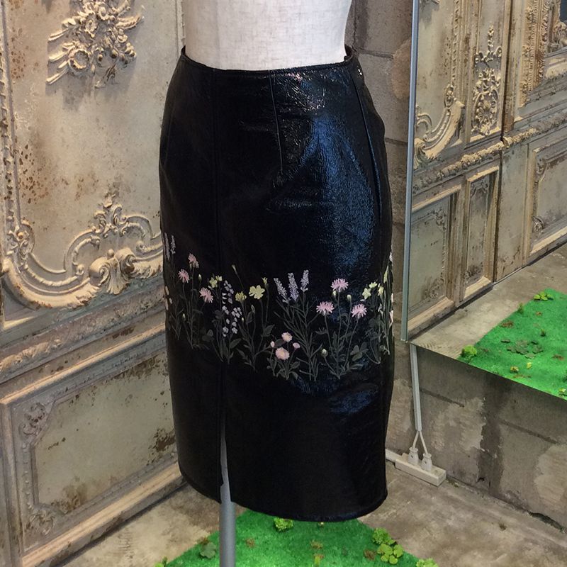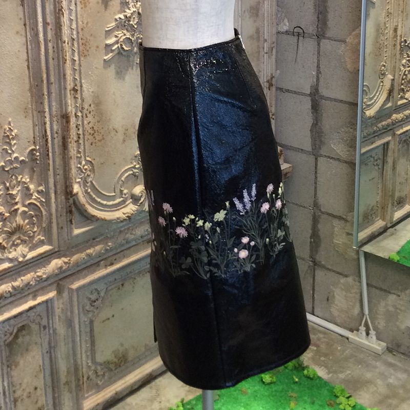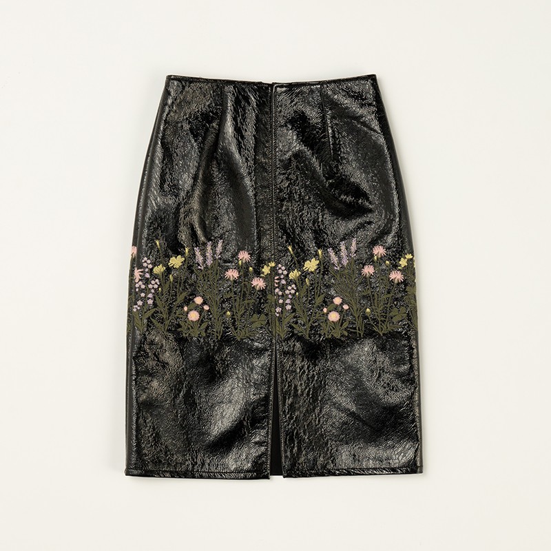 • フローラルエンブロイダードクリンクルフォウレザーペンシルスカート
