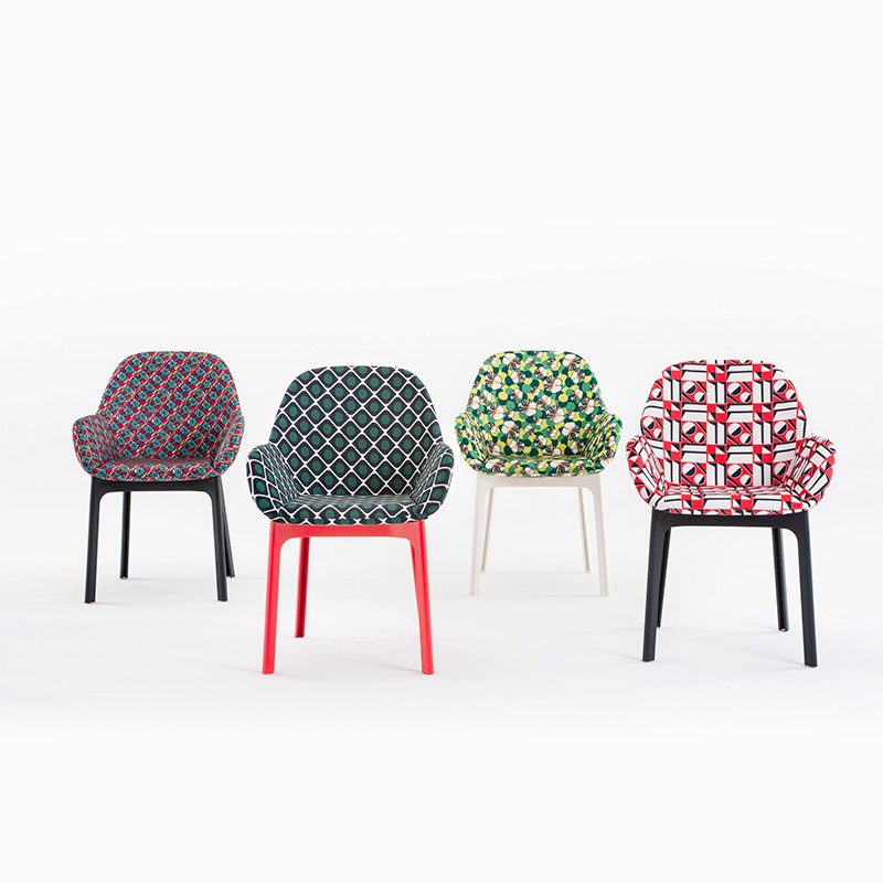 クラップはパトリシア・ウルキオラによってデザインされたアームチェアです。フレームとファブリックの組み合わせをかえるだけでよりポップでカラフルなチェアになります。