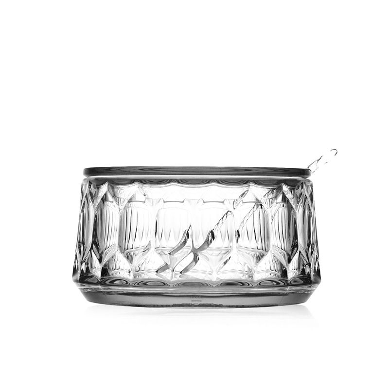 クリスタルガラスやダイヤモンドは、カッティングによって輝きや印象が変わります。このジェリーズも、表面のテクスチャ―デザインへのあくなき研究によって、今までのプラスチック製の食器では考えられなかった、驚きの美しさを実現させました。