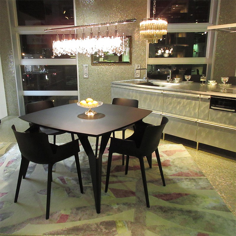 ダイニングテーブル「オリガミ」とKartell(カルテル)のダイニングチェア「ピウマ」4脚の5点セット。