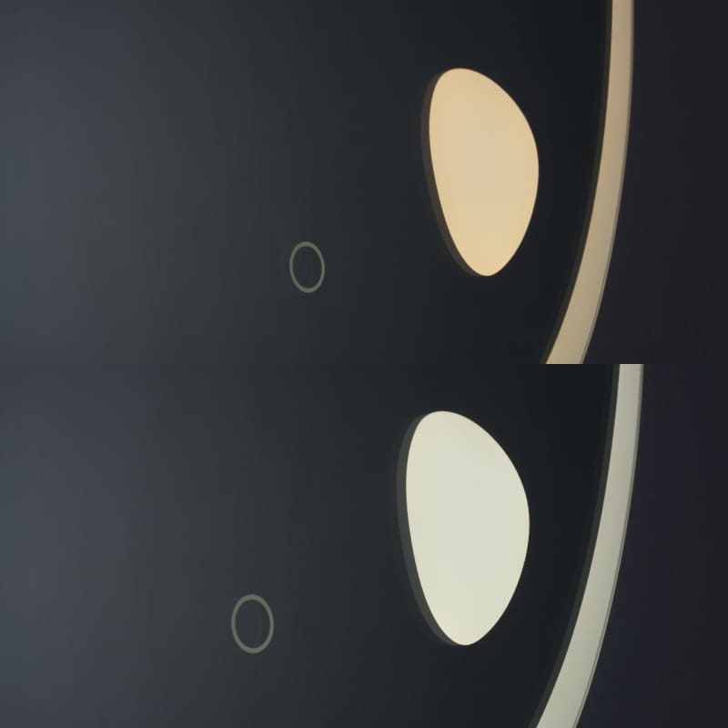 中央のタッチセンサーで、照明のオン・オフや、色温度を6000Kと4000Kの切り替えが可能です。