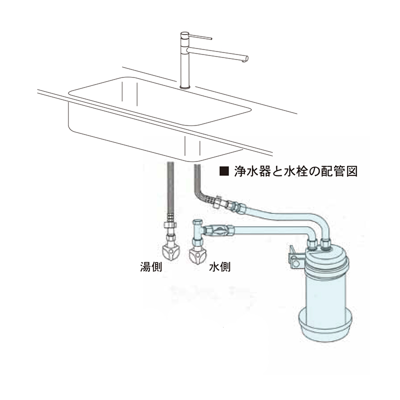 デザインや機能に優れたキッチン用水栓を自由に選択でき、浄水専用水栓も省くことができるので、シンクまわりがすっきりとします。