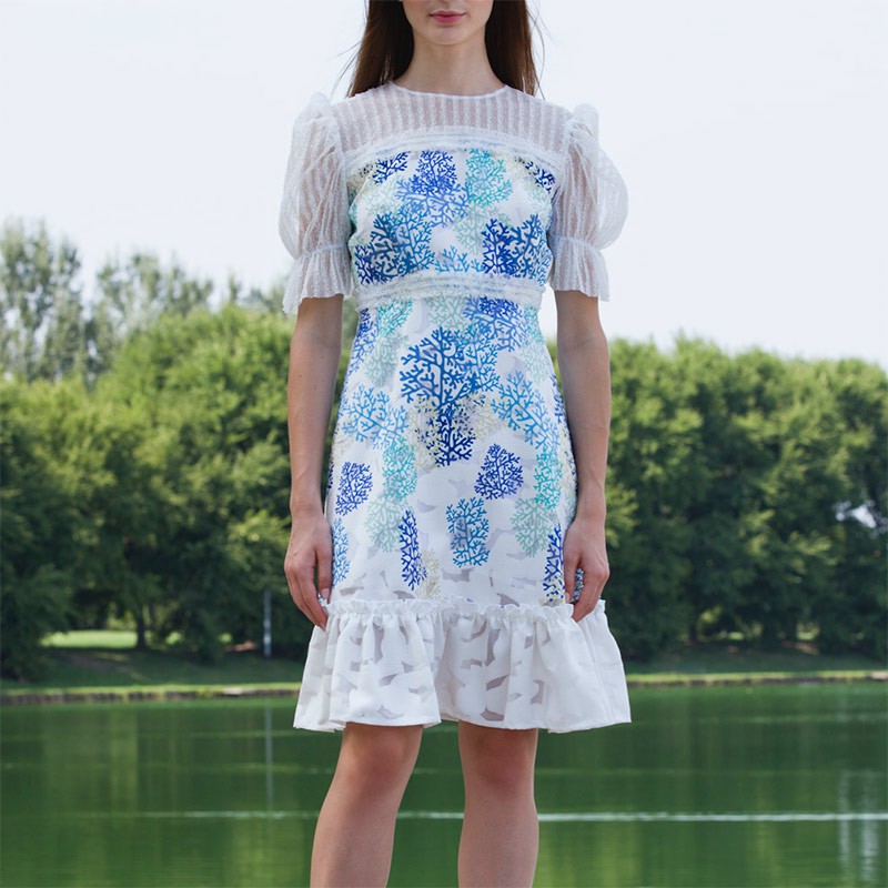 Fil Coupe’Coral Print Dress