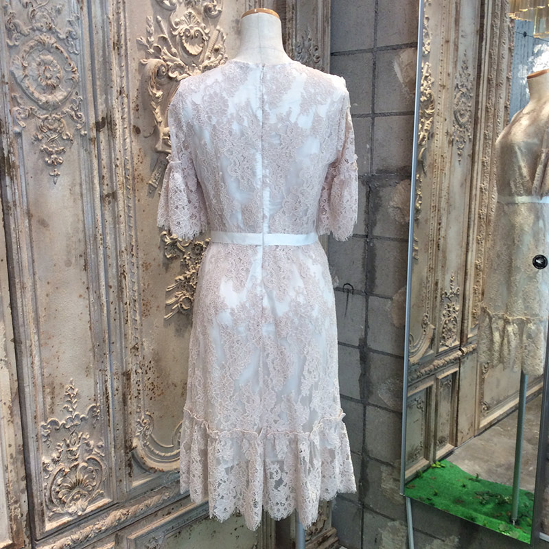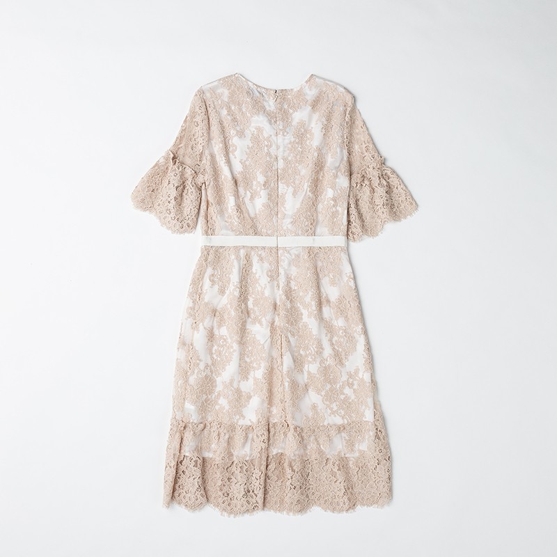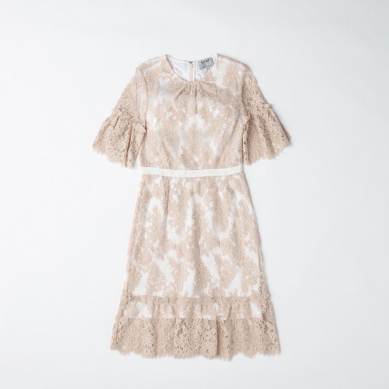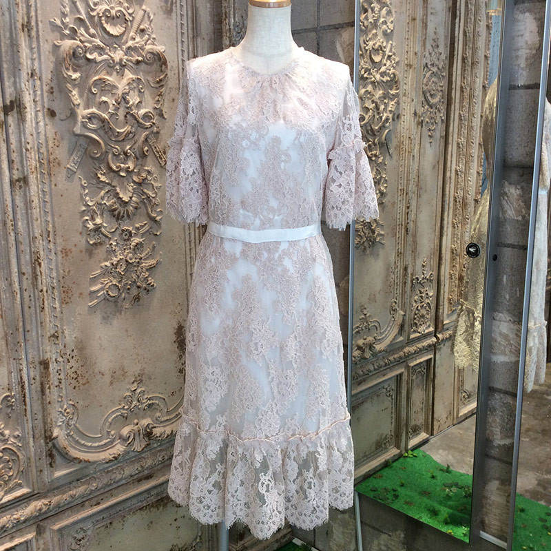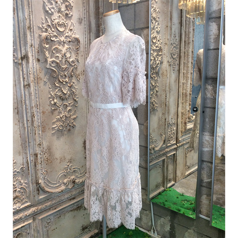 コーラルシャンティイレースギャザードドレス