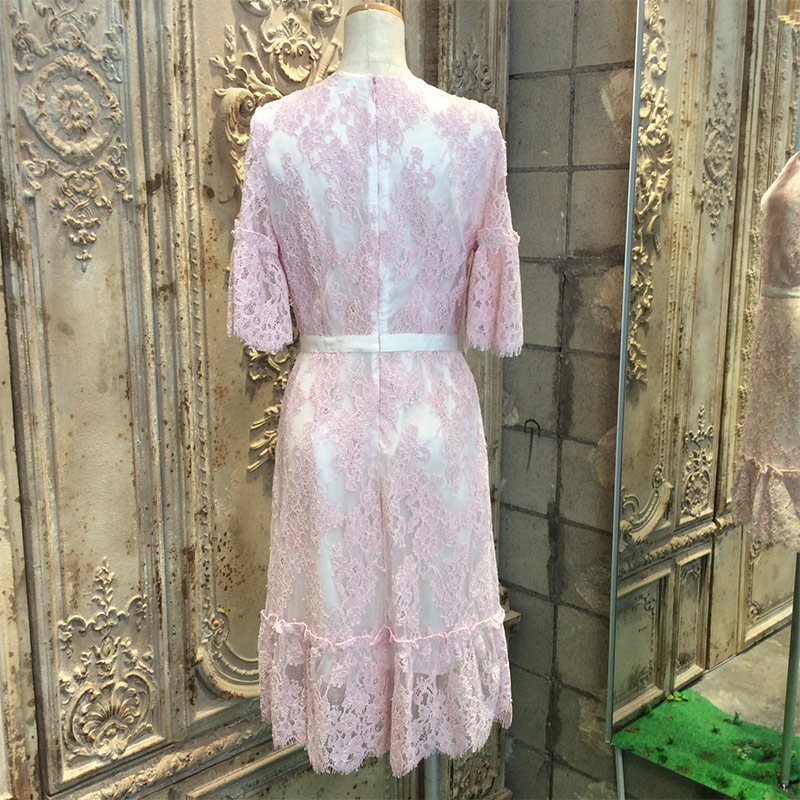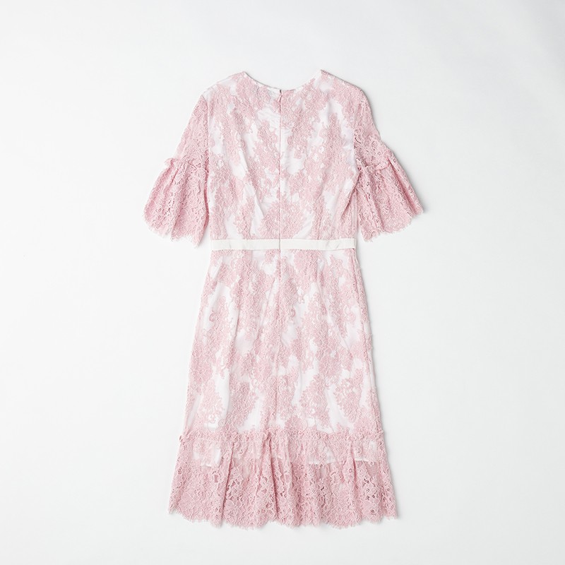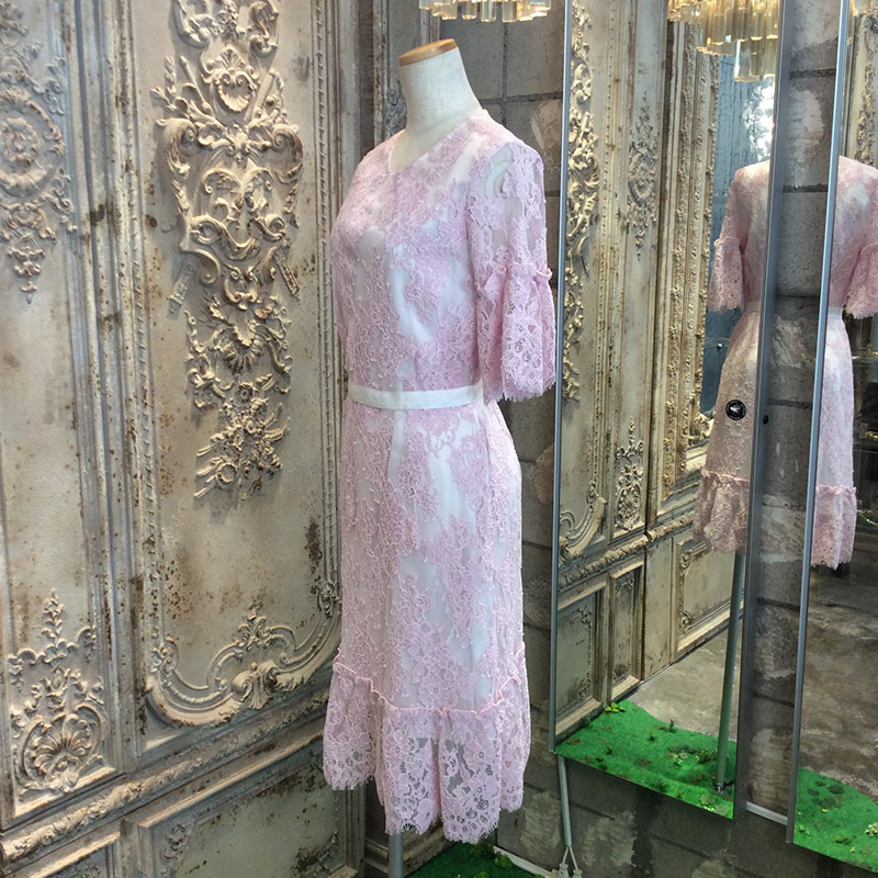 コーラルシャンティイレースギャザードドレス