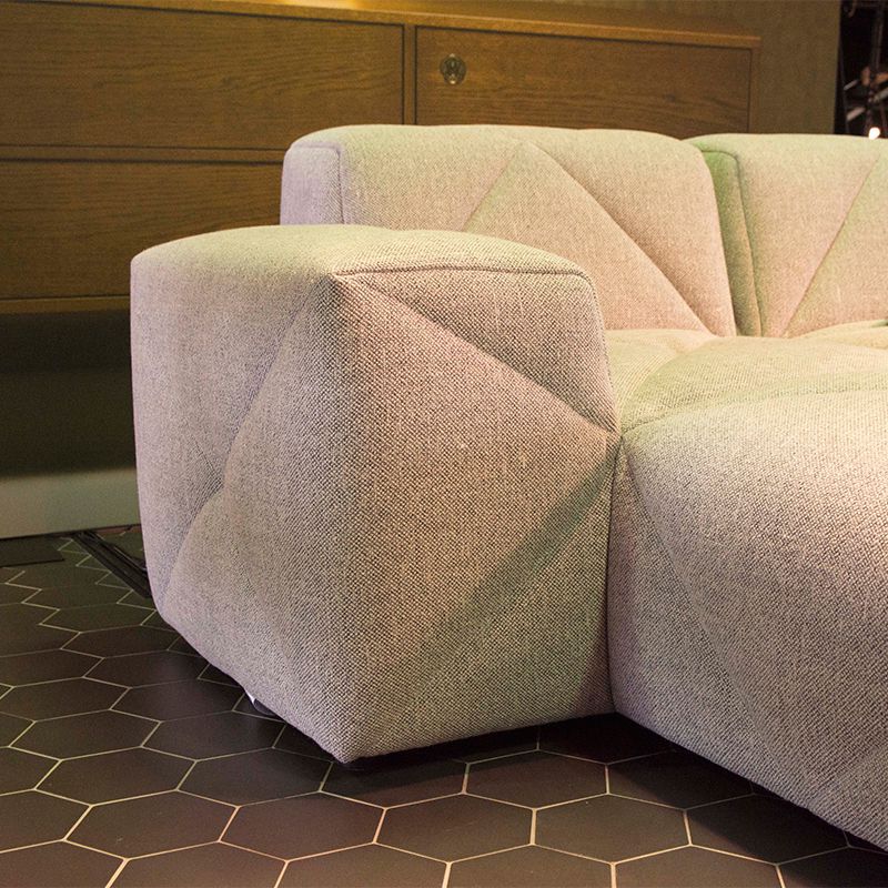 多彩なシステム性が特徴のひとつでもあるBFFソファ。シンプルなブロック形状の連続のように見えますが、生地の内側に隠されているフォームは傾斜やシートの高さなど、最高の快適さを提供できるように絶妙に調節されています。