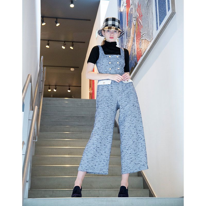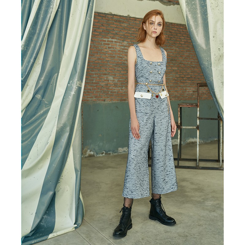 • クラシックツイードジャンプスーツウィズディタッチャブルカードスーツチャームベルト