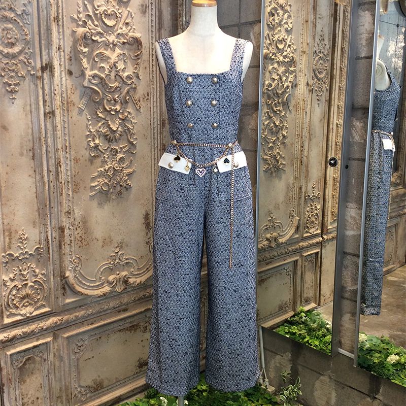 クラシックツイードジャンプスーツウィズディタッチャブルカードスーツチャームベルト