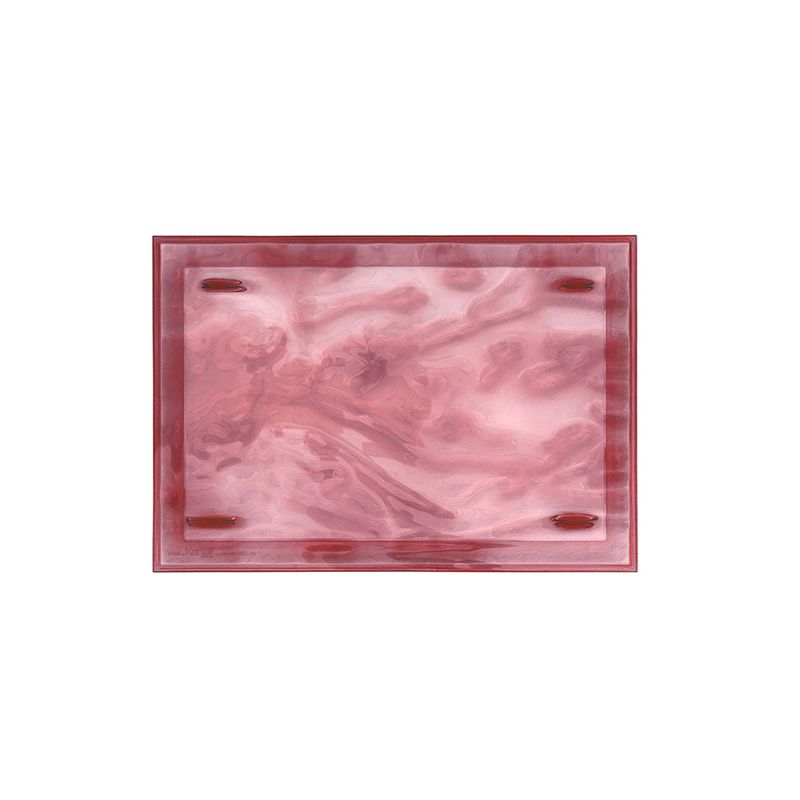 半透明のPMMAでできた彫刻のようなトレイは、色彩と光の輝きによりその上のグラスやカップを三次元的な不思議効果で演出します。
