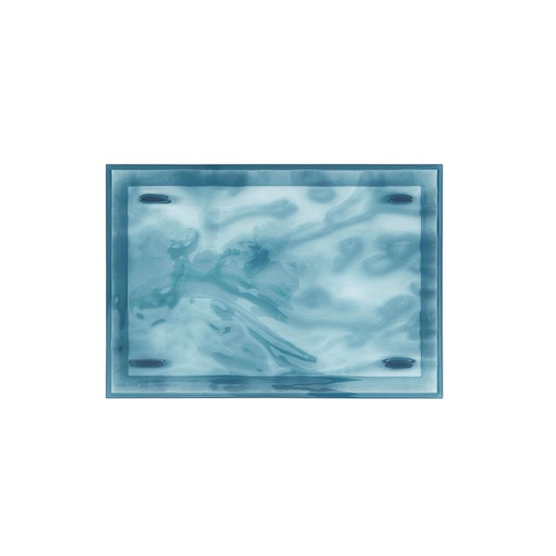半透明のPMMAでできた彫刻のようなトレイは、色彩と光の輝きによりその上のグラスやカップを三次元的な不思議効果で演出します。