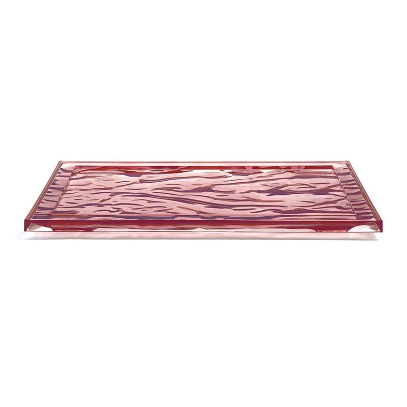 半透明のPMMAでできた彫刻のようなトレイは、色彩と光の輝きによりその上のグラスやカップを三次元的な不思議効果で演出します。