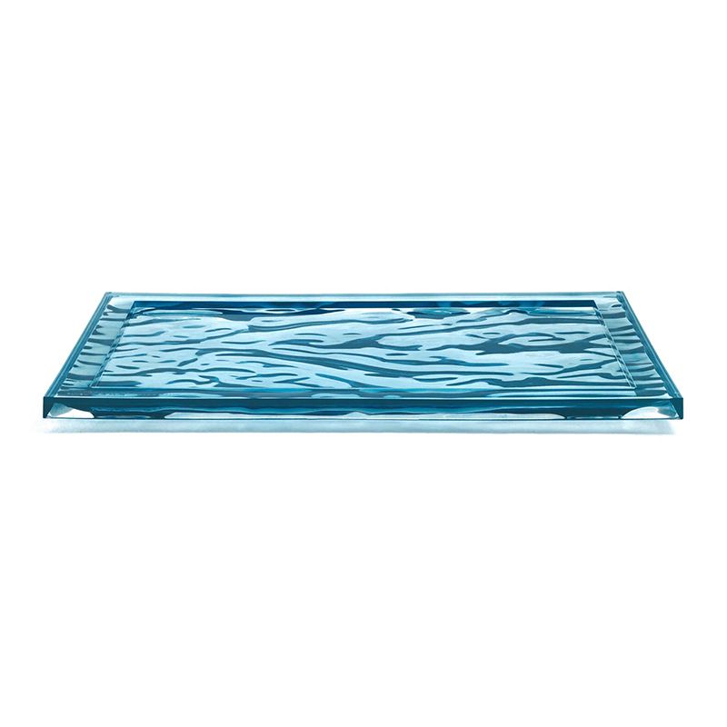 半透明のPMMAでできた彫刻のようなトレイは、色彩と光の輝きによりその上のグラスやカップを三次元的な不思議効果で演出します。
