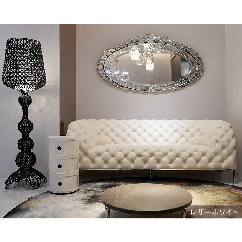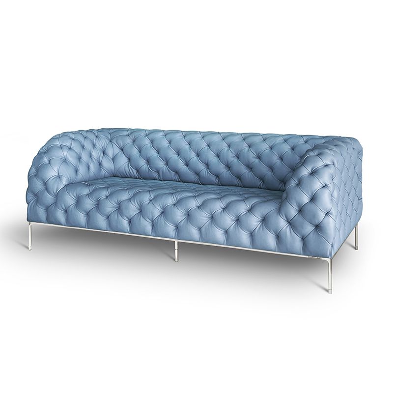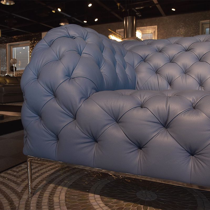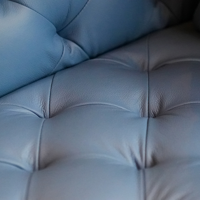 リズミカルにステッチ(タフティング加工)を施したクラシックなチェスターフィールド調のソファを、モダンにアレンジしたデザインです。