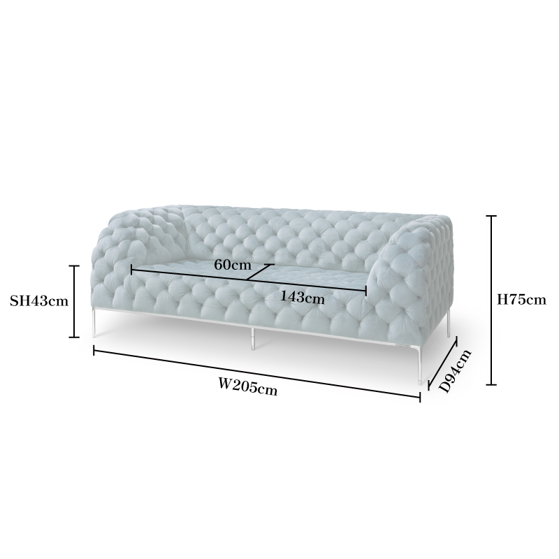 家族でゆったり使え、大人でも横になってリラックスできるサイズを確保しつつ、チェスターフィールドソファにありがちな、外側への張り出しはスッキリと削ぎ落としました。