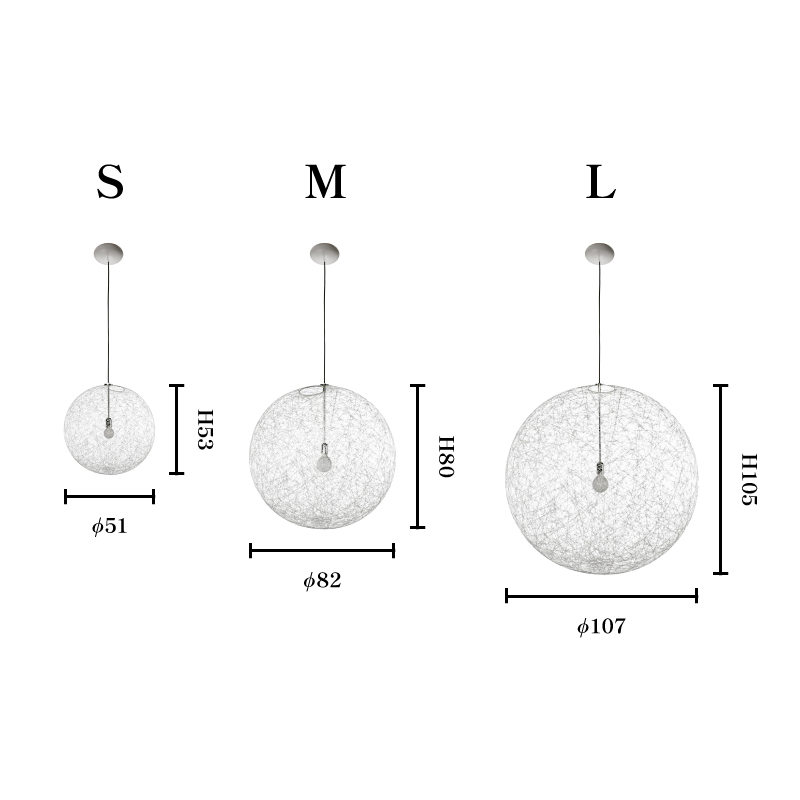 ランダムライトは本体自体がディフューザーの役割をし、中心の光源を拡散させて、その姿はまるで夜空に浮かぶ月のような印象です。