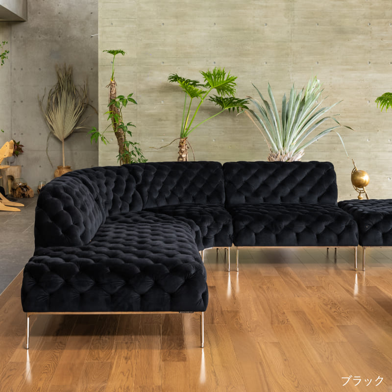 リズミカルにステッチ(タフティング加工)を施したクラシックなチェスターフィールド調のソファを、モダンにアレンジしたデザインです。