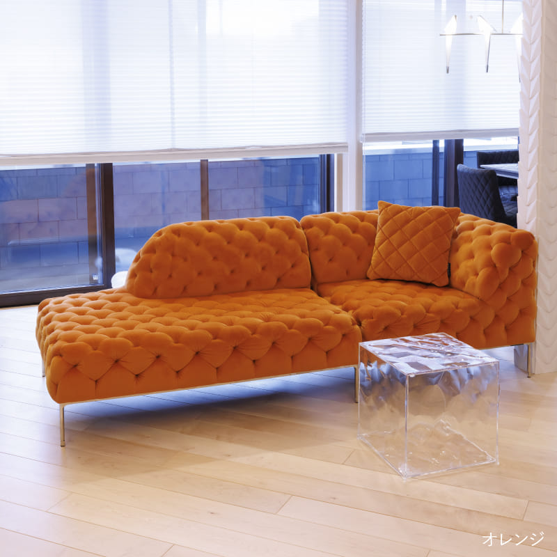 リズミカルにステッチ(タフティング加工)を施したクラシックなチェスターフィールド調のソファを、モダンにアレンジしたデザインです。