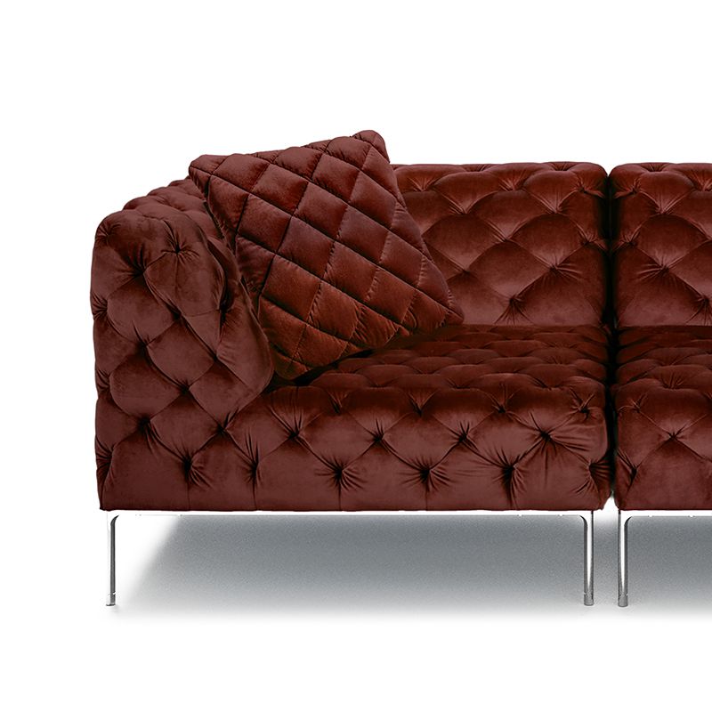 リズミカルにステッチ(タフティング加工)を施したクラシックなチェスターフィールド調のソファを、モダンにアレンジしたデザインです。