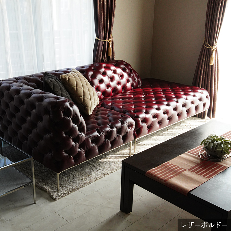 リズミカルにステッチ(タフティング加工)を施したクラシックなチェスターフィールド調のソファを、モダンにアレンジしたデザインです。