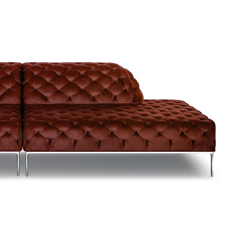 リズミカルにステッチ(タフティング加工)を施したクラシックなチェスターフィールド調のソファを、モダンにアレンジしたデザインです。