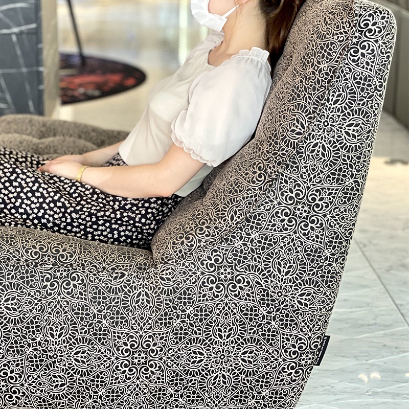 フロアに近いローサイズのソファ。 まるでベッドで寝ながら腰掛けているようなリラックス感が味わえます。 高密度ポリウレタンフォームを採用した弾むような弾力と包みこまれるような柔らかさがあり、心地の良さはまさに無限大です。