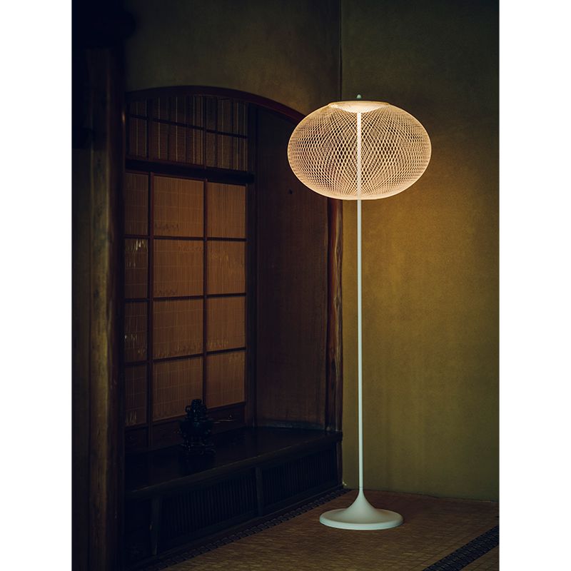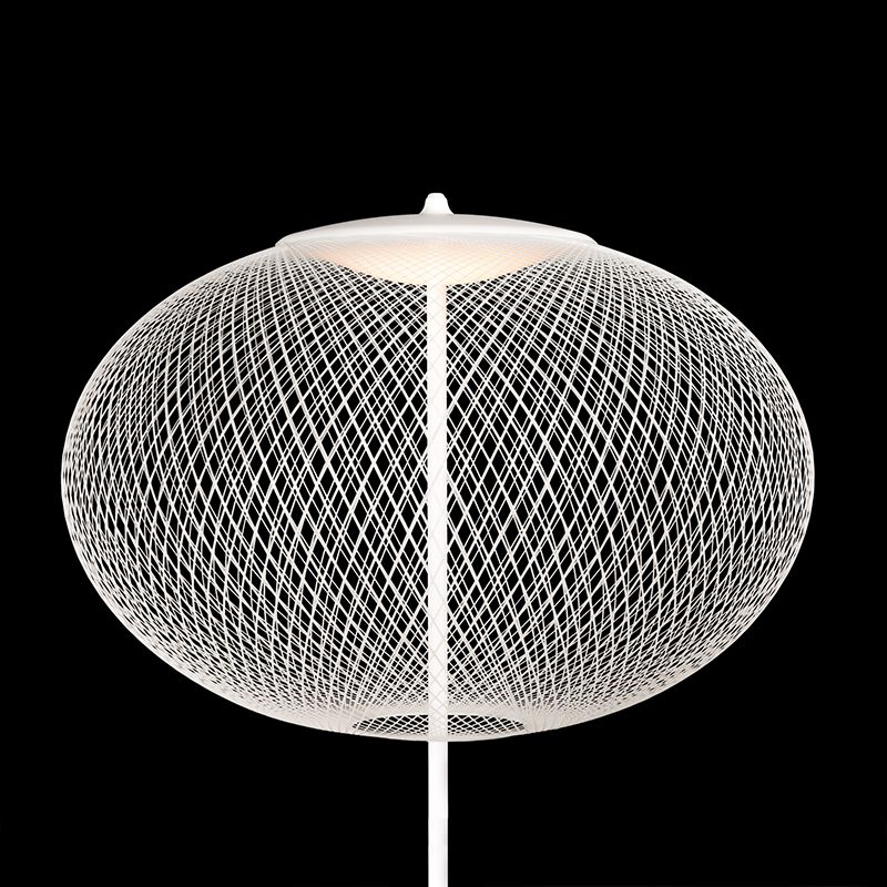 ファイバーグラス製の細い糸が規則的に巻かれ、それ自体が構造でもあり、フォルムでもあり、光を拡散するディフューザーの役割ももっています。