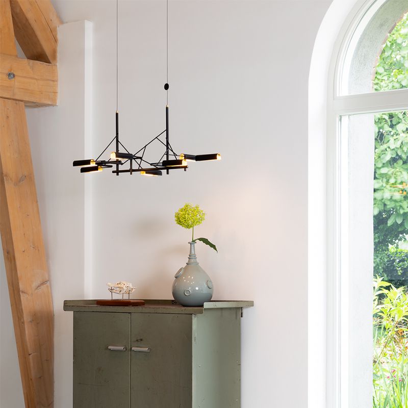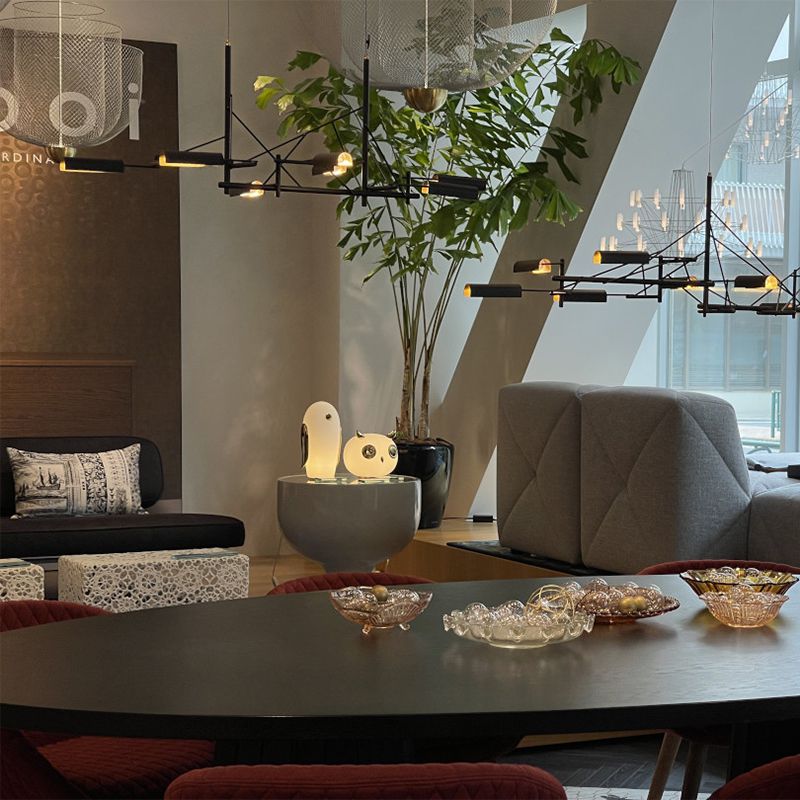 ブラックコーティングされた小枝のような細いステンレスが複雑に繋がりあって、全体のフォルムと構造を作り出しています。