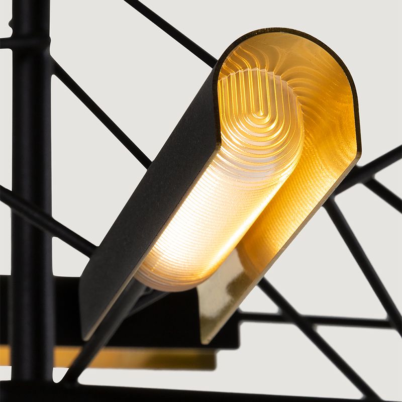 LED光源のリズミカルな配置と、複雑に架かり合うフレームは、彼の職人気質による長い時間にも及ぶ試行錯誤から生み出されています。