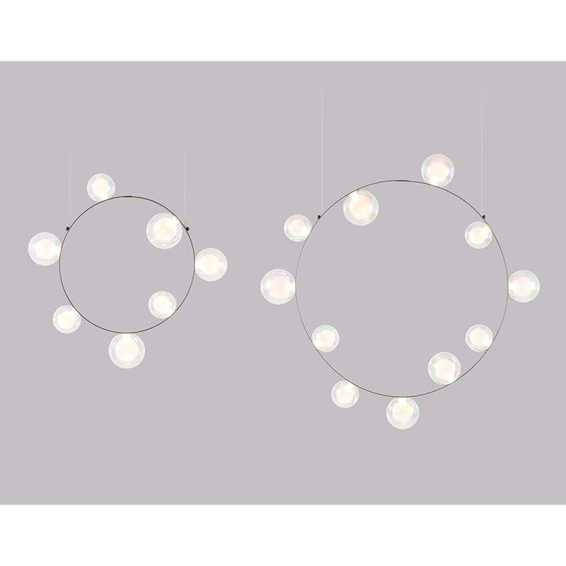 複数のオーナメントが織りなす光のハーモニーは、まるでシャボン玉が宙を軽やかに舞うような幻想的な雰囲気を演出します。
