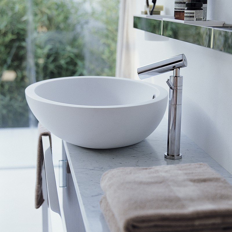 ホワイトクリスタルプラント®バイオベースで作られたこの洗面ボウルは、様々な洗面カウンターへ組み合わせが可能です。