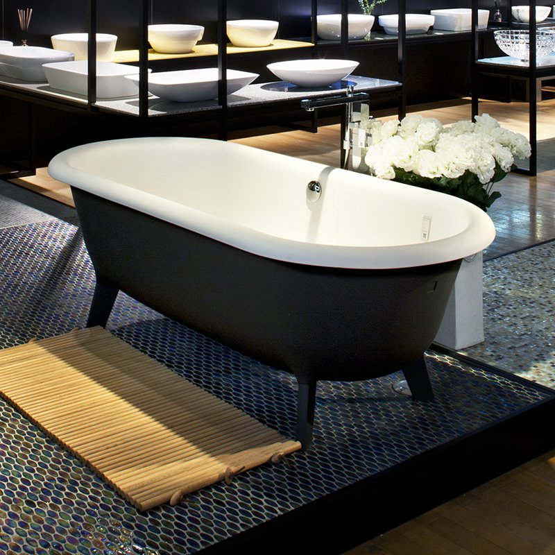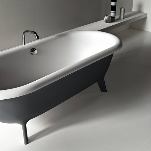 鋳鉄製バスタブのデザインに基づいたクラシックなラインを踏襲し、4本の脚で支えられています。外側がダークグレーに塗装されており、他のバスタブとは一線を画するデザインです。
