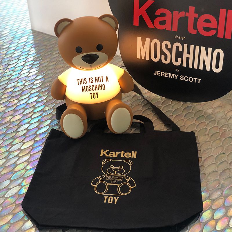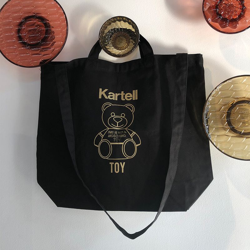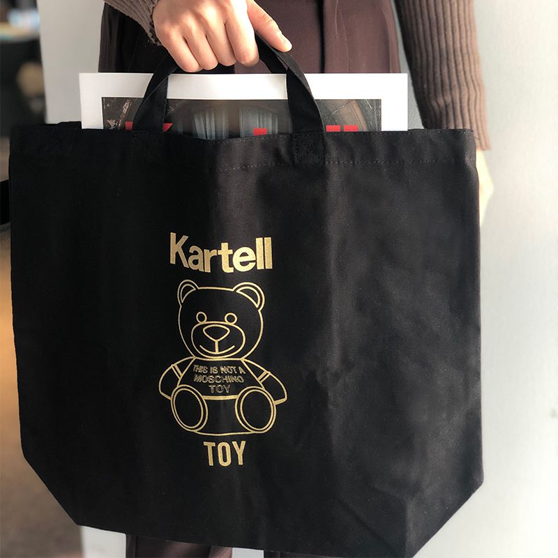 イタリアのファッションブランド「MOSCHINO|モスキーノ」とインテリアブランド「Kartell|カルテル」がコラボレーションした照明「トイ」のイラストが描かれたオリジナルトートバッグです。