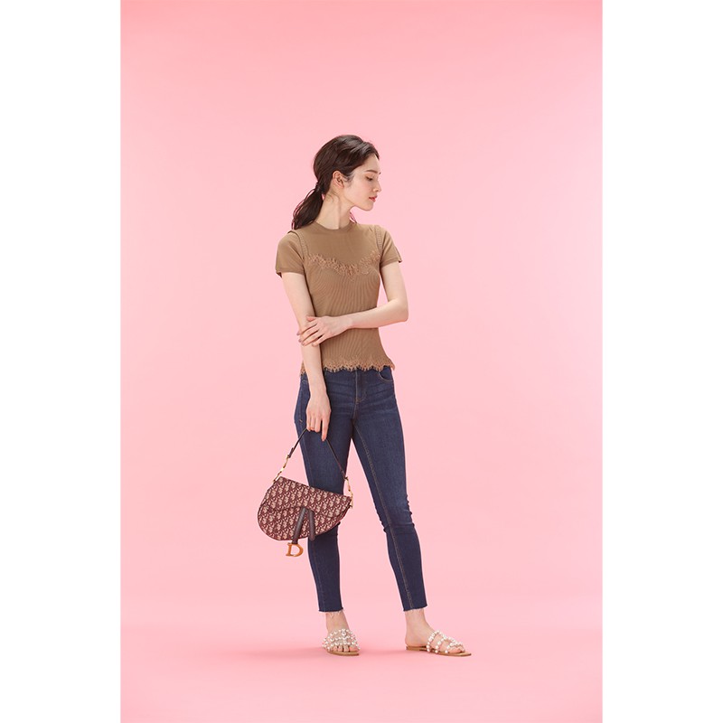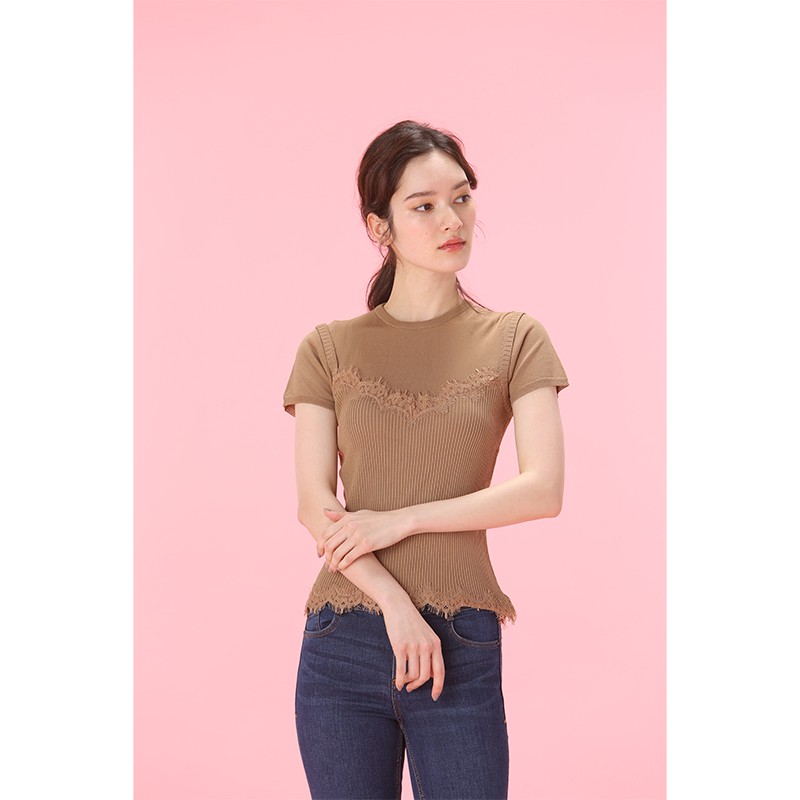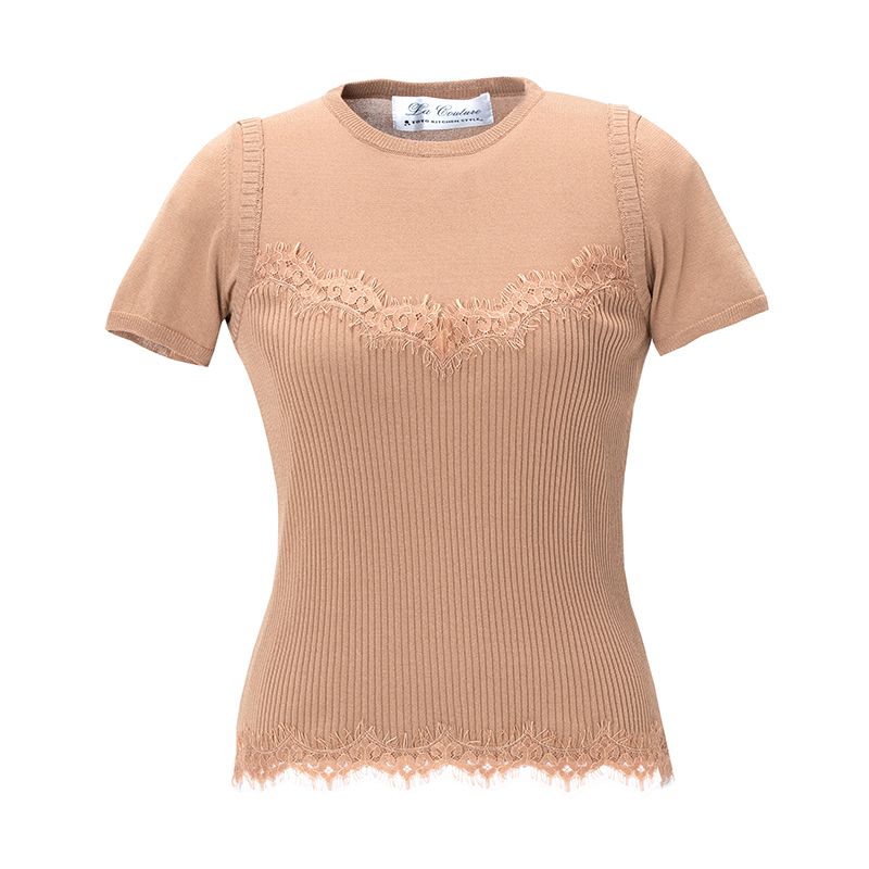 レースキャミソールを重ね着したようなデザインのニット。