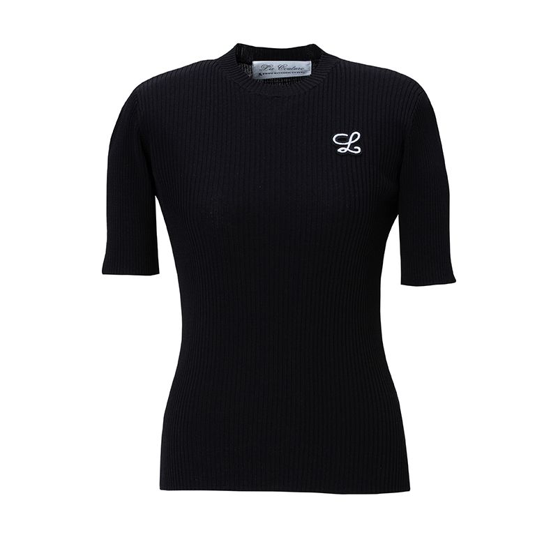 ラクチュールのロゴワッペンが施されたリブニット。
