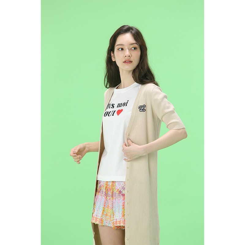 ラクチュールのロゴワッペンが施されたリブニットカーディガン。