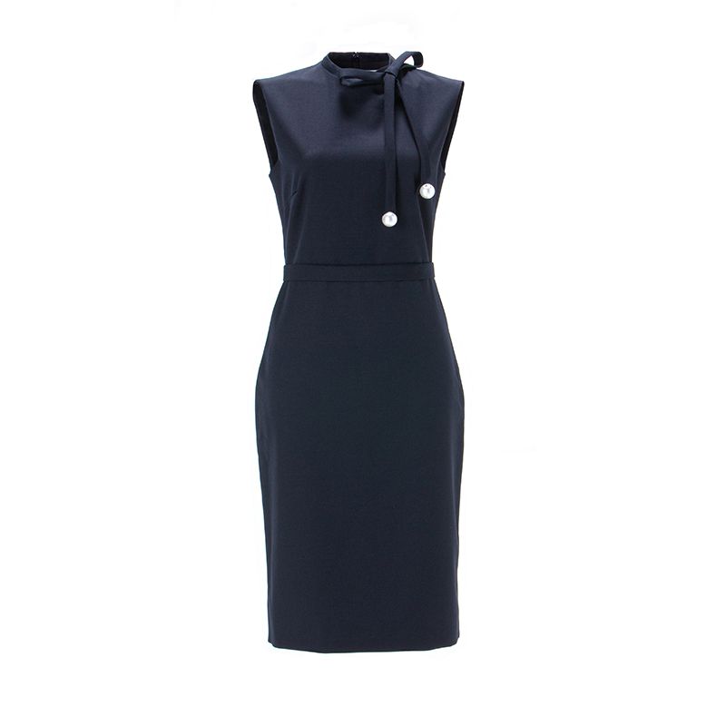 襟元のリボンと、揺れるパールがで上品な華やかさをプラスしたワンピース。