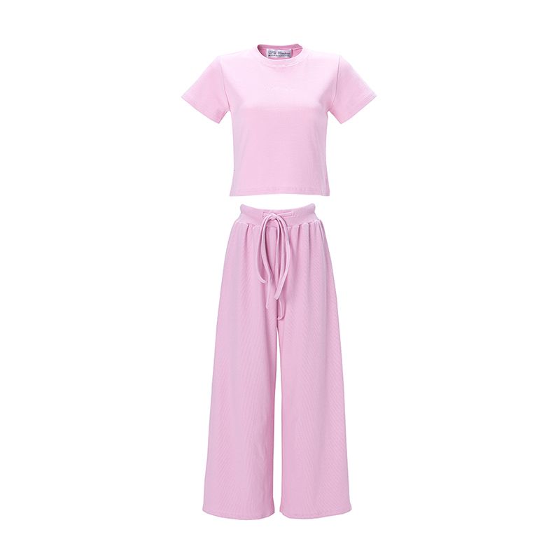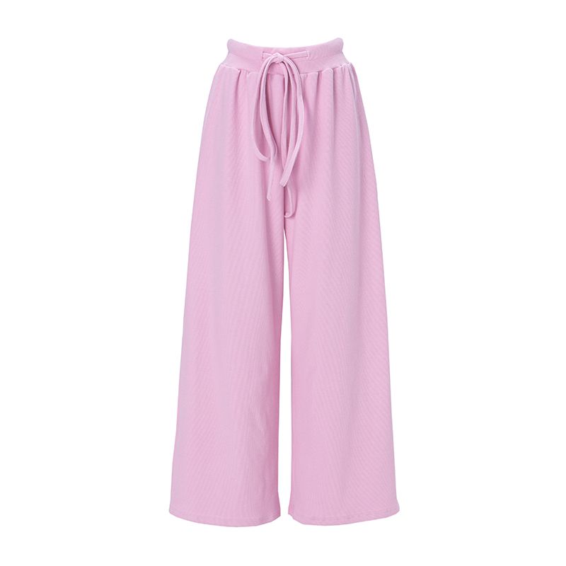 トップはタイトに、ボトムはゆったりシルエットのセットアップで、女性らしく着こなせます。セットアップでも、それぞれ単体でも着用でき、着回しができます。