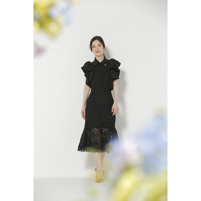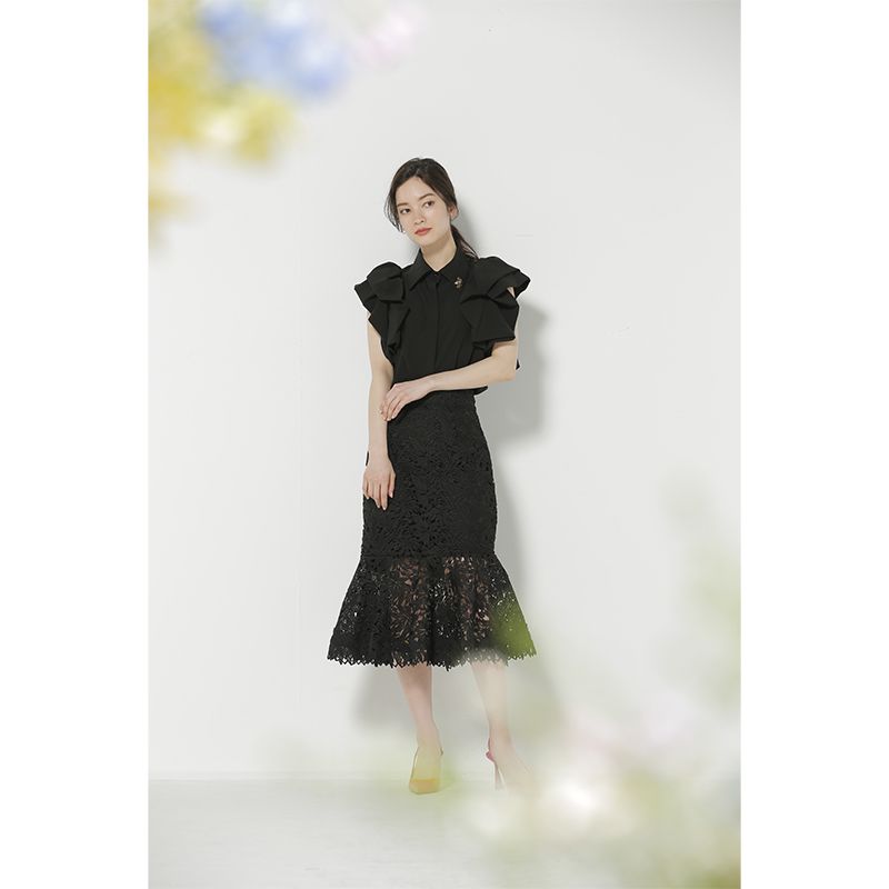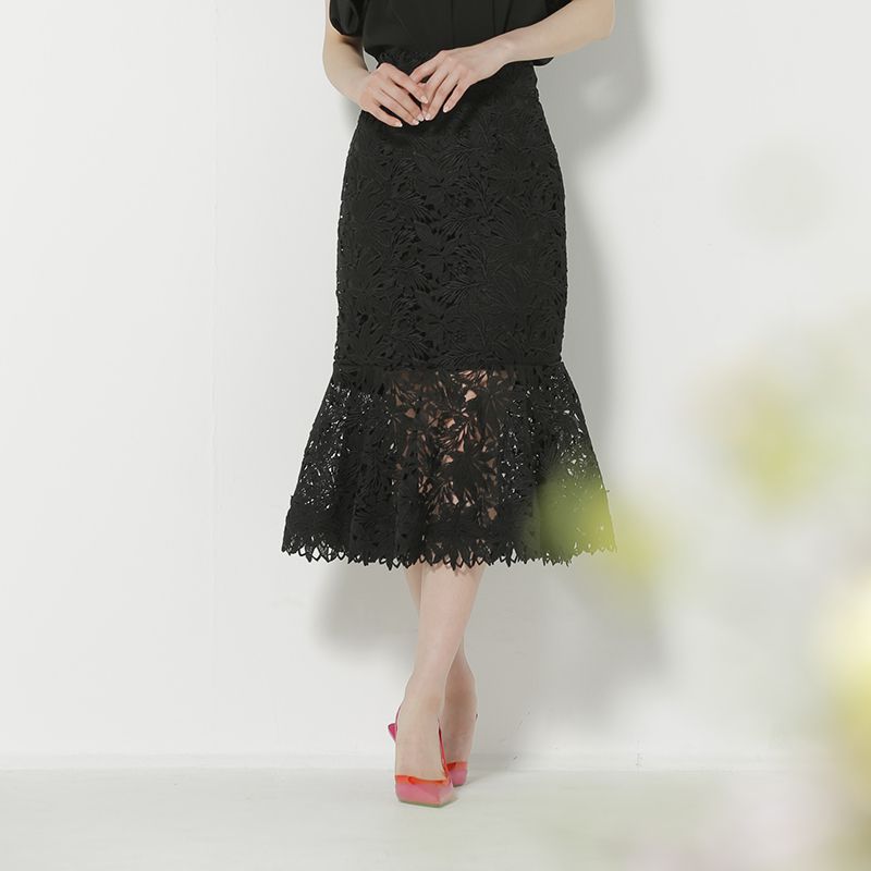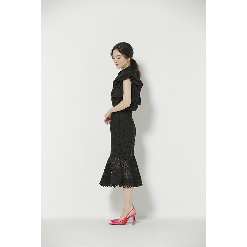 裾のドレープが優雅にひろがるマーメイドスカート。