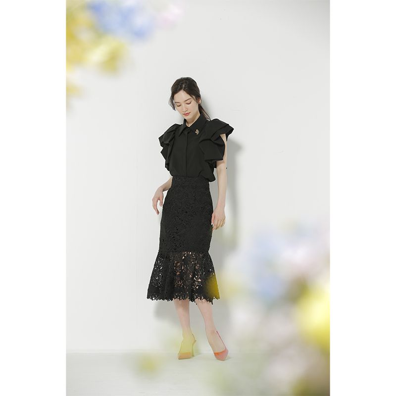ボタニカルモチーフのレースを贅沢に使用しています。