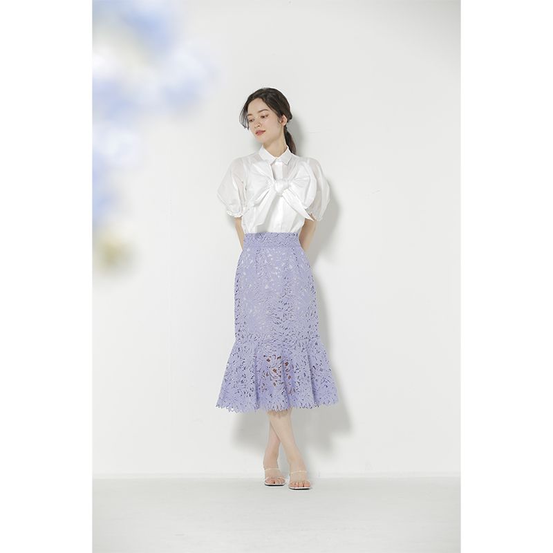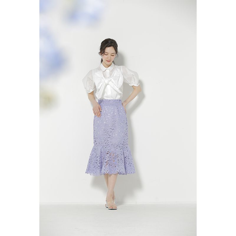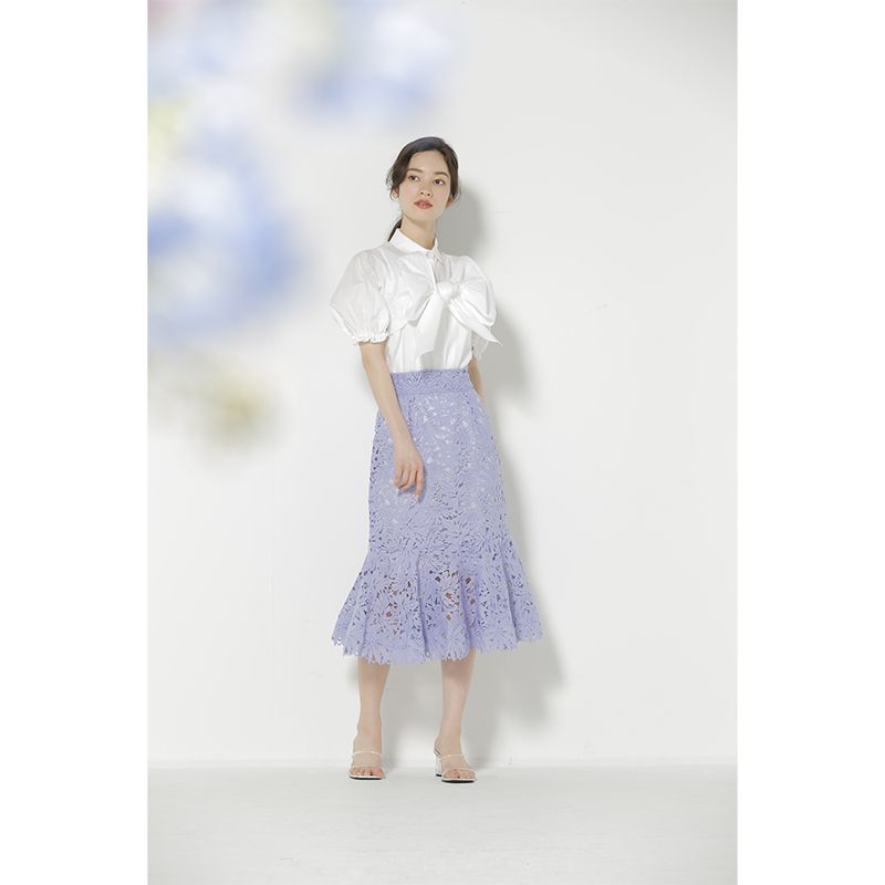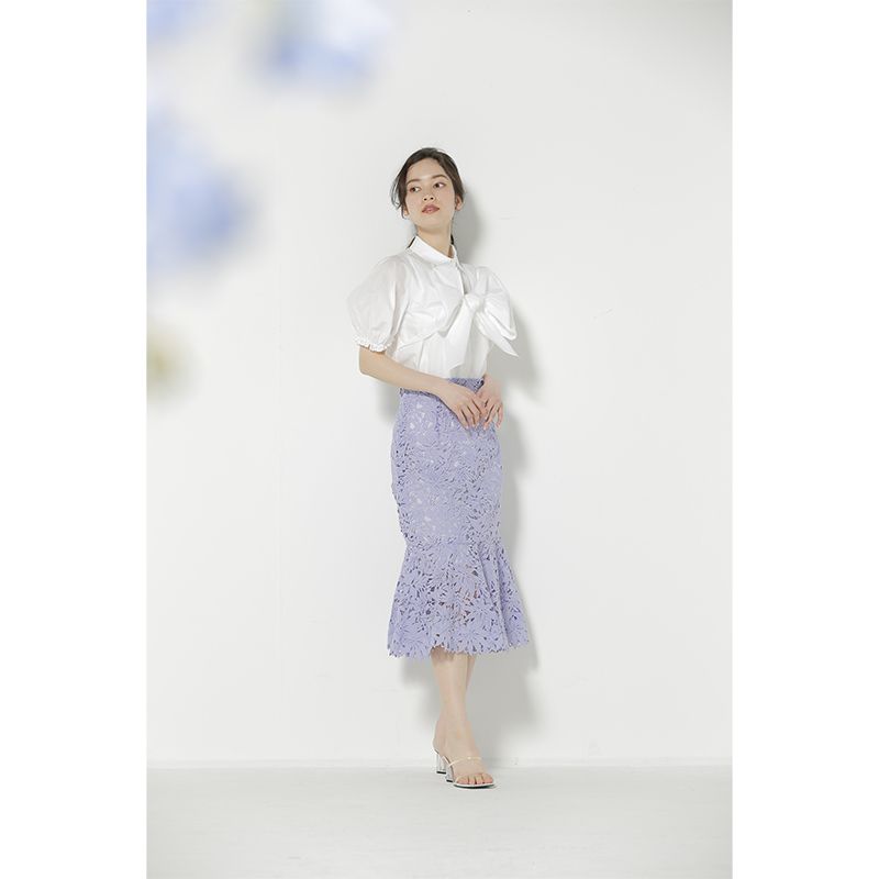 裾のドレープが優雅にひろがるマーメイドスカート。