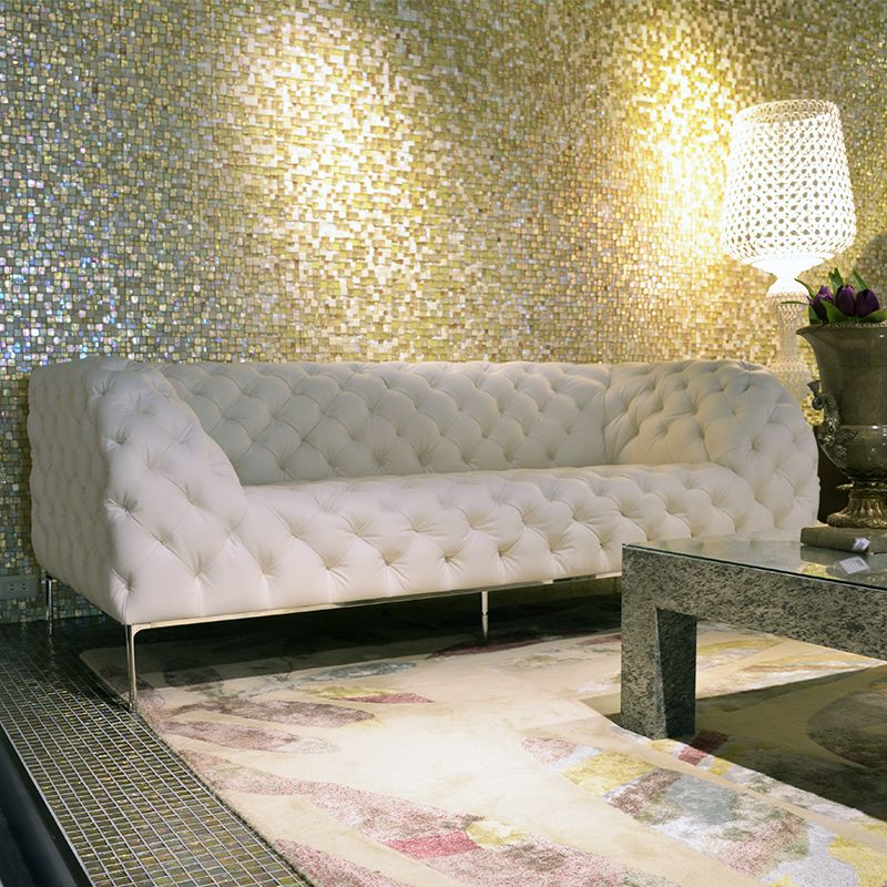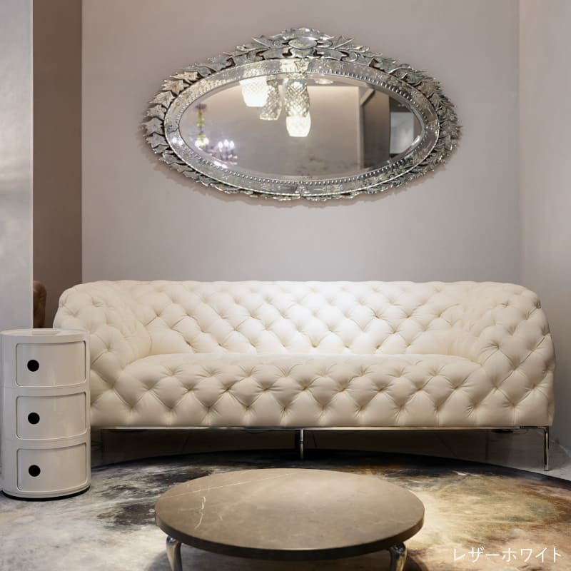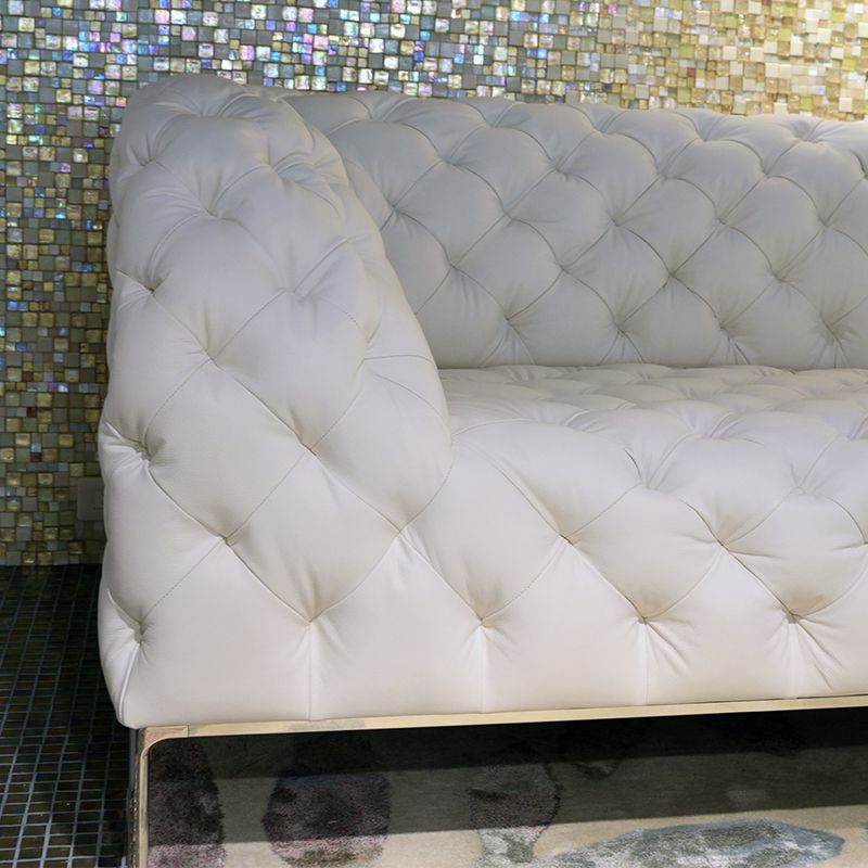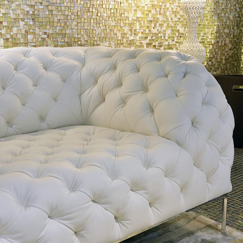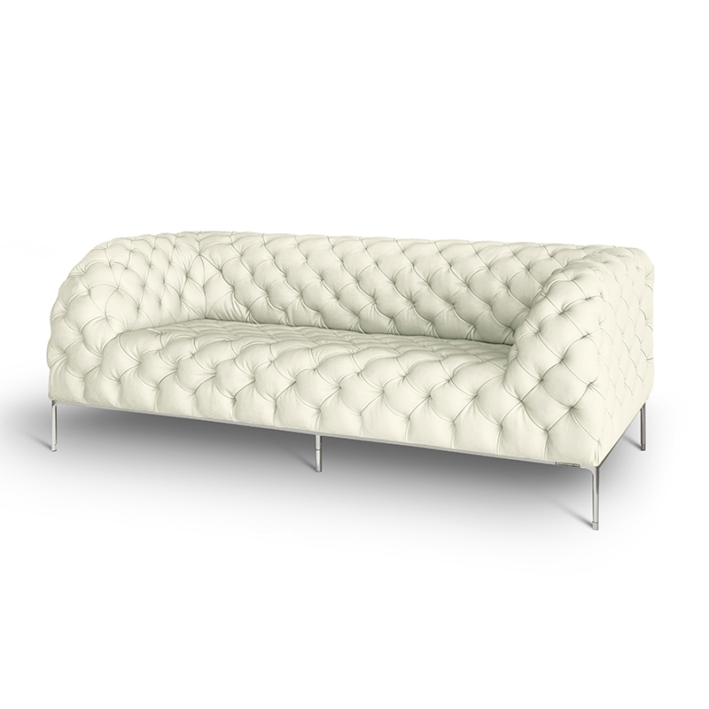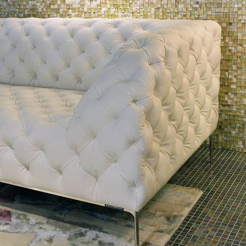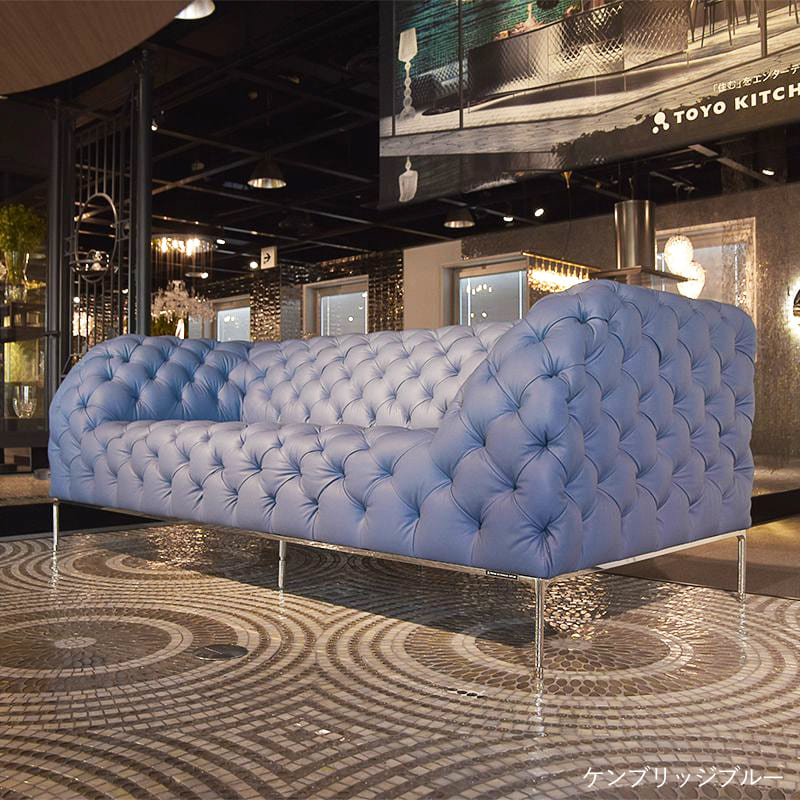 リズミカルにステッチ(タフティング加工)を施したクラシックなチェスターフィールド調のソファを、モダンにアレンジしたデザインです。