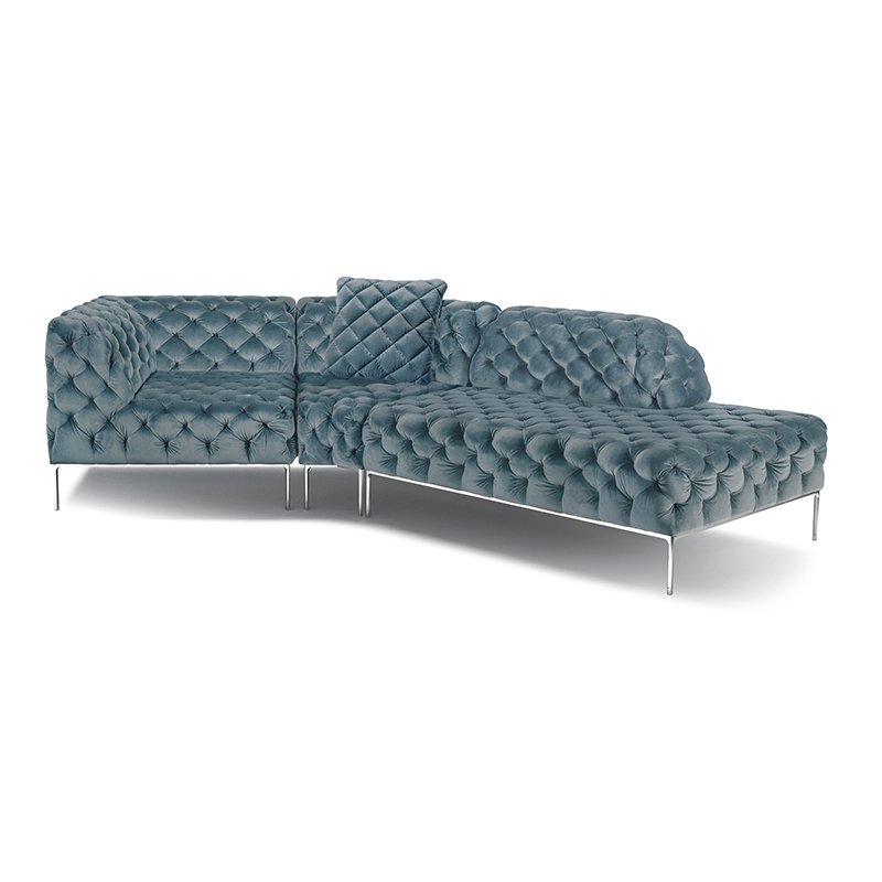リズミカルにステッチ(タフティング加工)を施したクラシックなチェスターフィールド調のソファを、モダンにアレンジしたデザインです。