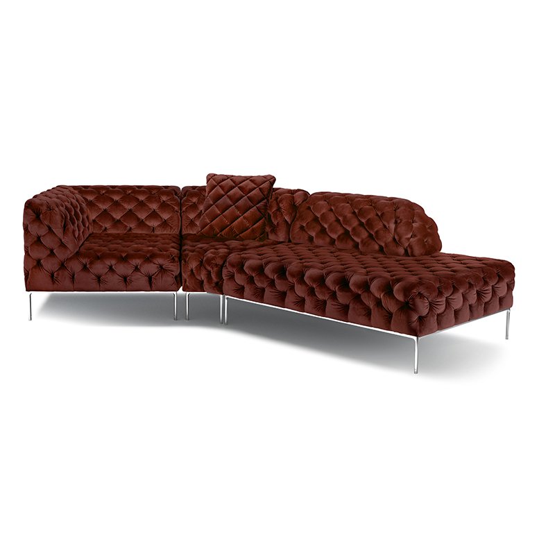 リズミカルにステッチ(タフティング加工)を施したクラシックなチェスターフィールド調のソファを、モダンにアレンジしたデザインです。
