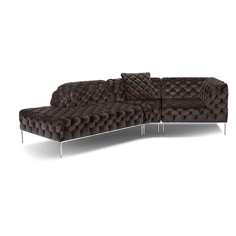 リズミカルにステッチ(タフティング加工)を施したクラシックなチェスターフィールド調のソファを、モダンにアレンジしたデザインです。