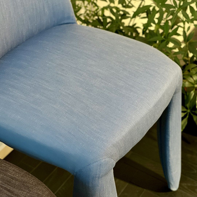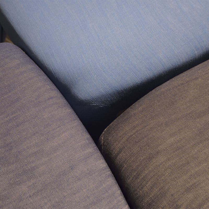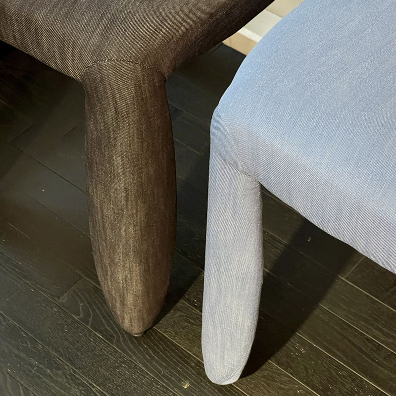 生地はインテリアデザイン向けに特別に製作されています。デニム独特の風合いはそのままに、強度は従来のデニムの約3倍、染色は環境に優しく、色移りや色落ちもしません。