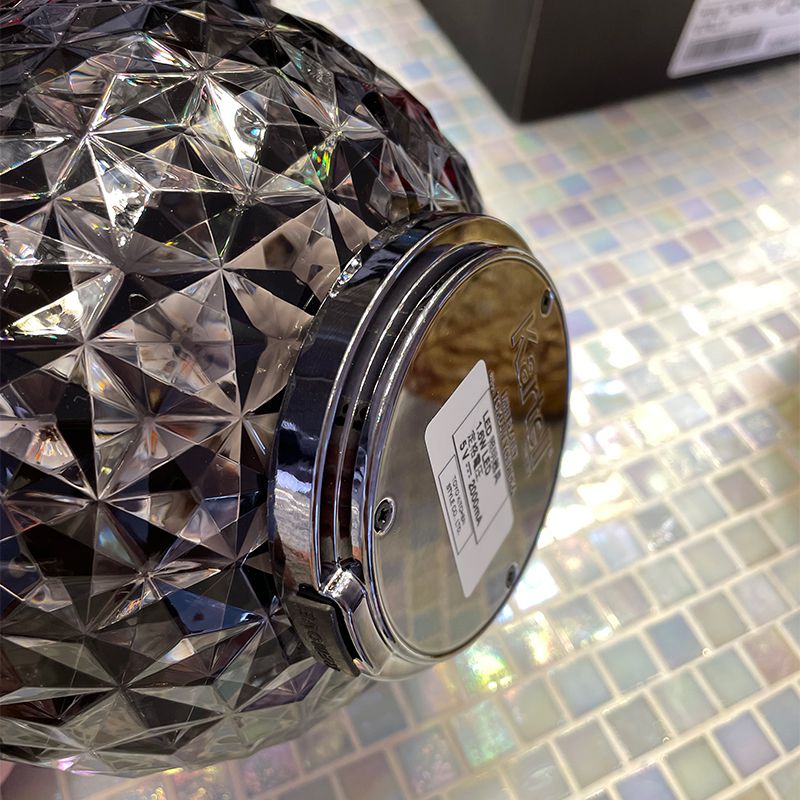 光の屈折を緻密に計算したシェードの加工とカルテルが独自に開発した内蔵のLED照明によりクリスタルガラスの輝きをプラスティックで実現しています。