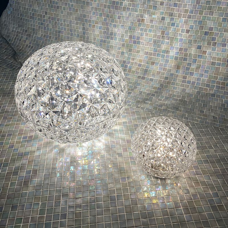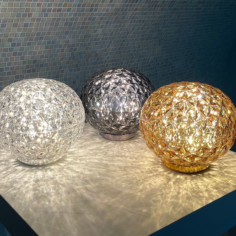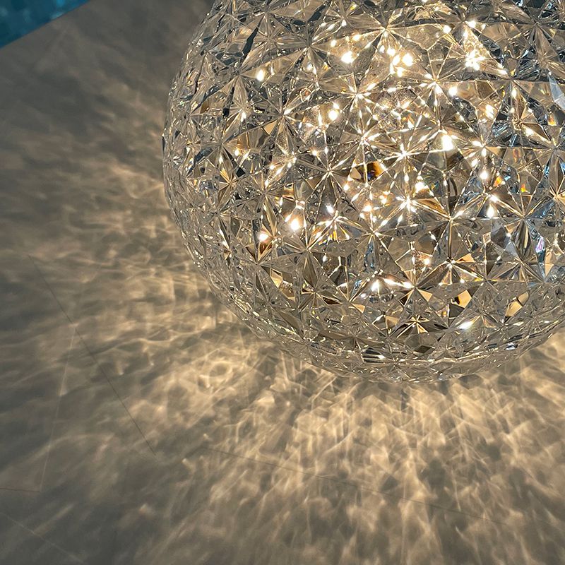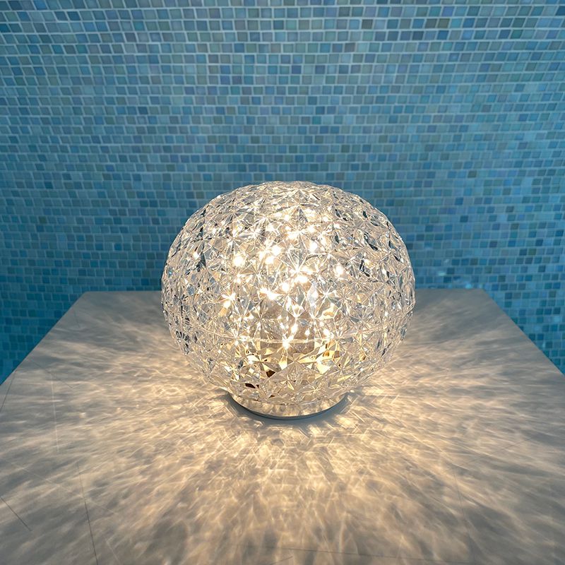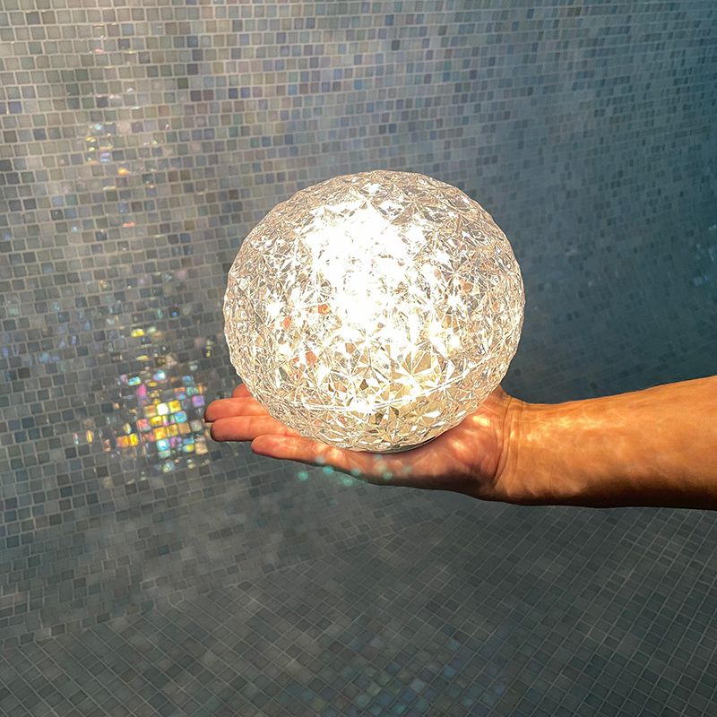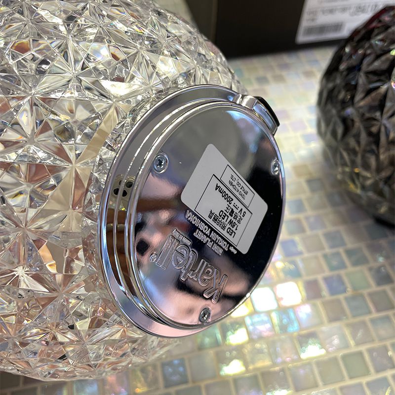 光の屈折を緻密に計算したシェードの加工とカルテルが独自に開発した内蔵のLED照明によりクリスタルガラスの輝きをプラスティックで実現しています。