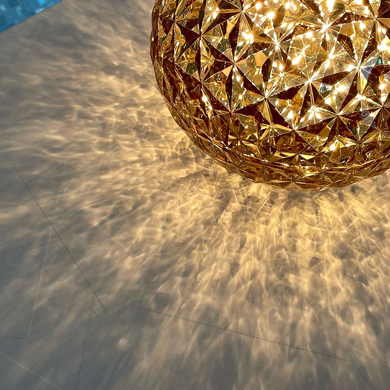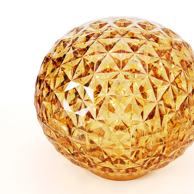 光の屈折を緻密に計算したシェードの加工とカルテルが独自に開発した内蔵のLED照明によりクリスタルガラスの輝きをプラスティックで実現しています。