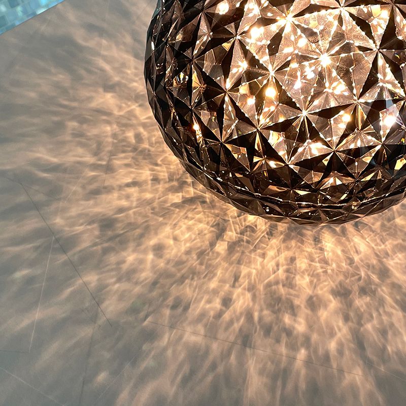 光の屈折を緻密に計算したシェードの加工とカルテルが独自に開発した内蔵のLED照明によりクリスタルガラスの輝きをプラスティックで実現しています。