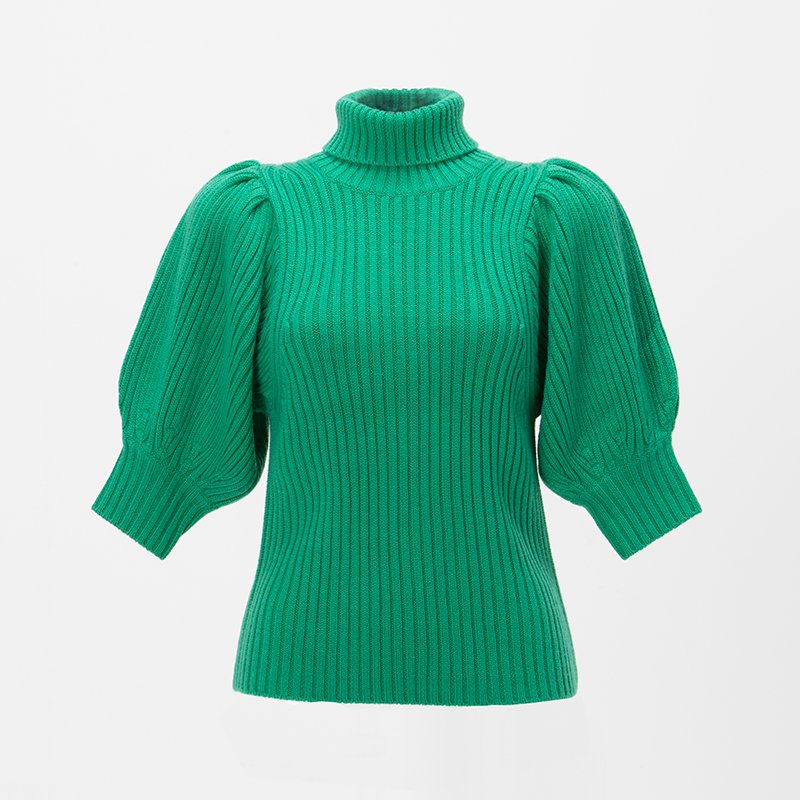 ぽわんとしたシルエットのボリューム感のあるお袖のパフスリーブニット。